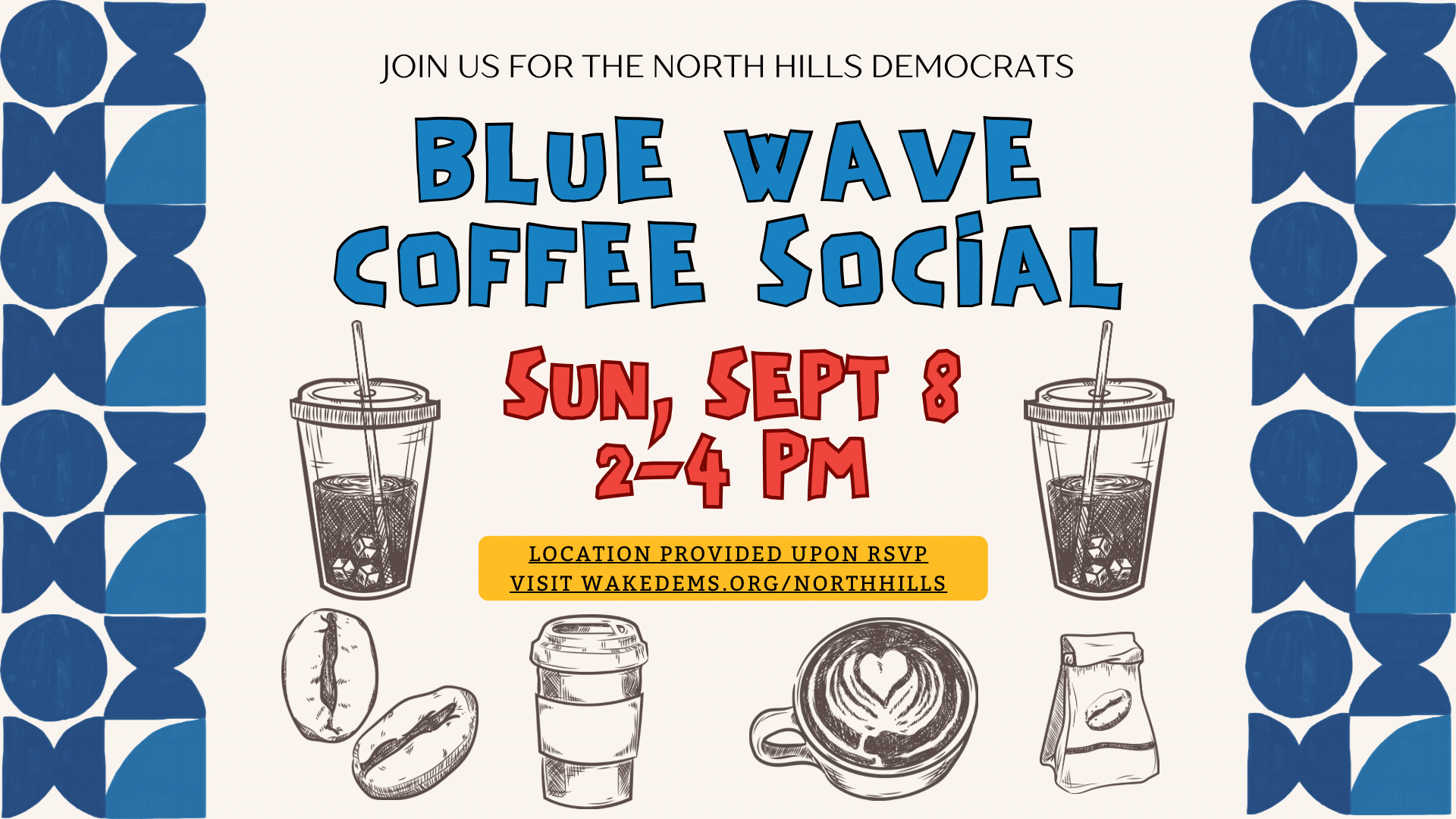 Join Wake Democrats for a coffee social in North Hills area. Exact location will be shared with RSVP.